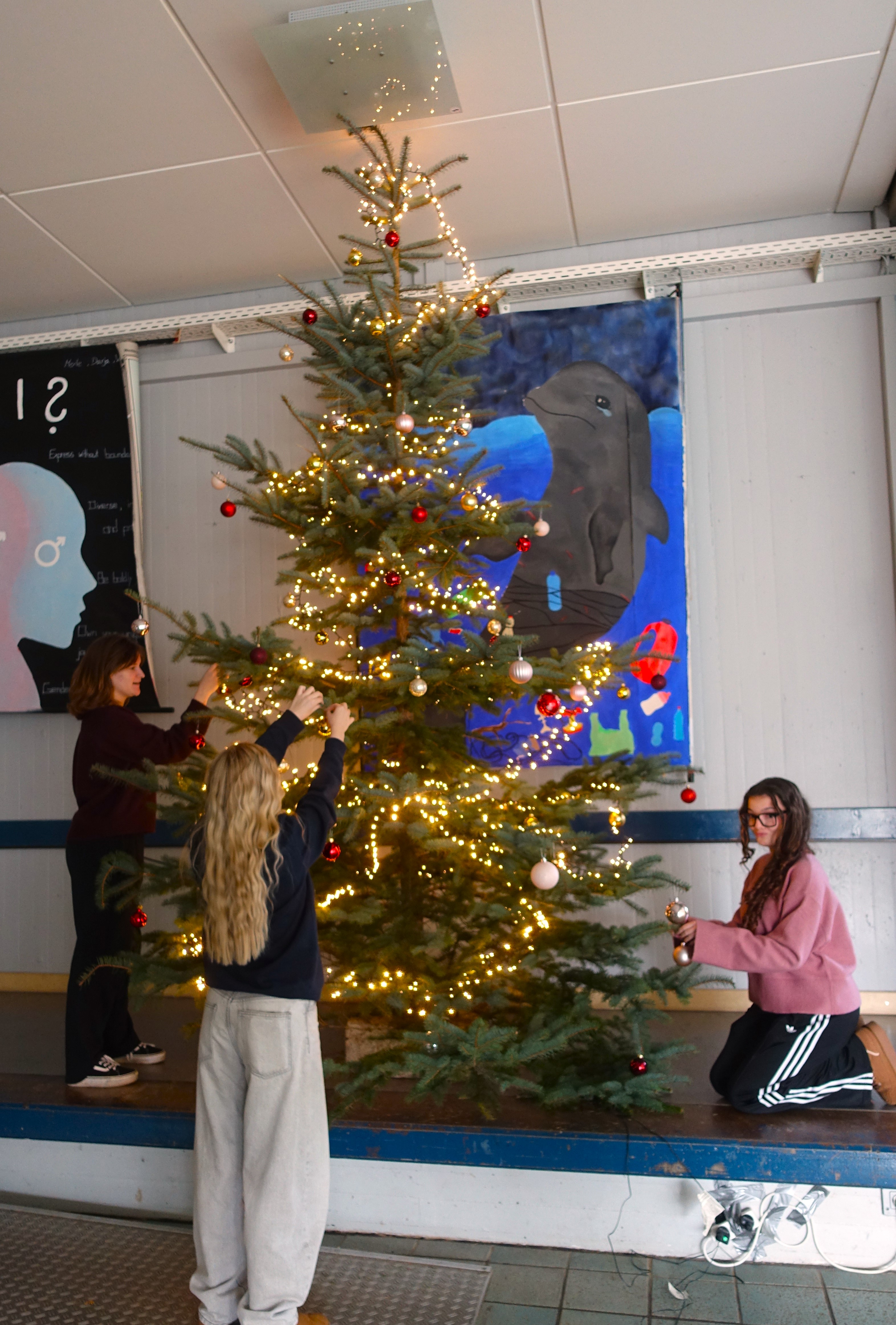 Der Schul-Weihnachtsbaum und die Nikolausaktion der AG Casa do Zezinho, deren Erlös der brasilianischen Partnerschule zugutekommt, gehören für die Gemeinschaftsschule Marpingen zur Vorweihnachtszeit wie für andere Plätzchen und Adventskalender. Regelmäßig können zum 6. Dezember die Nikoläuse aus fair gehandelter Schokolade erworben und verschenkt werden. Ebenso regelmäßig machen sich Georg Wilhelm, Klassenlehrer der 6c, und seine Schülerinnen und Schüler Ende November auf den Weg zum Grundstück von Elly Schu, professionell ausgestattet mit Axt, Handschuhen und Säge. Hier, am Ortsrand von Marpingen, wird dann ein besonders schön und dicht gewachsener Baum ausgewählt, unter fachkundiger Anleitung des Lehrers eigenhändig gefällt und in die Schule transportiert. In diesem Jahr haben sich die Jungen und Mädchen erstmals für zwei Bäume entschieden, die nun sowohl in der Aula als auch im Neubau – festlich geschmückt – für die 780 Schülerinnen und Schüler, für ihre Lehrerinnen, Lehrer und für alle Angestellten einen weihnachtlichen Zauber in die Schule bringen. Wie in allen Jahren zuvor waren auch die Mitschülerinnen und Mitschüler der Jahrgangsstufe 13 für die Dekoration verantwortlich. So sind denn die beiden Bäume auch wieder ein Gemeinschaftswerke der Kleinen und der Großen, ein Symbol für den Zusammenhalt der ganzen Schulgemeinschaft.