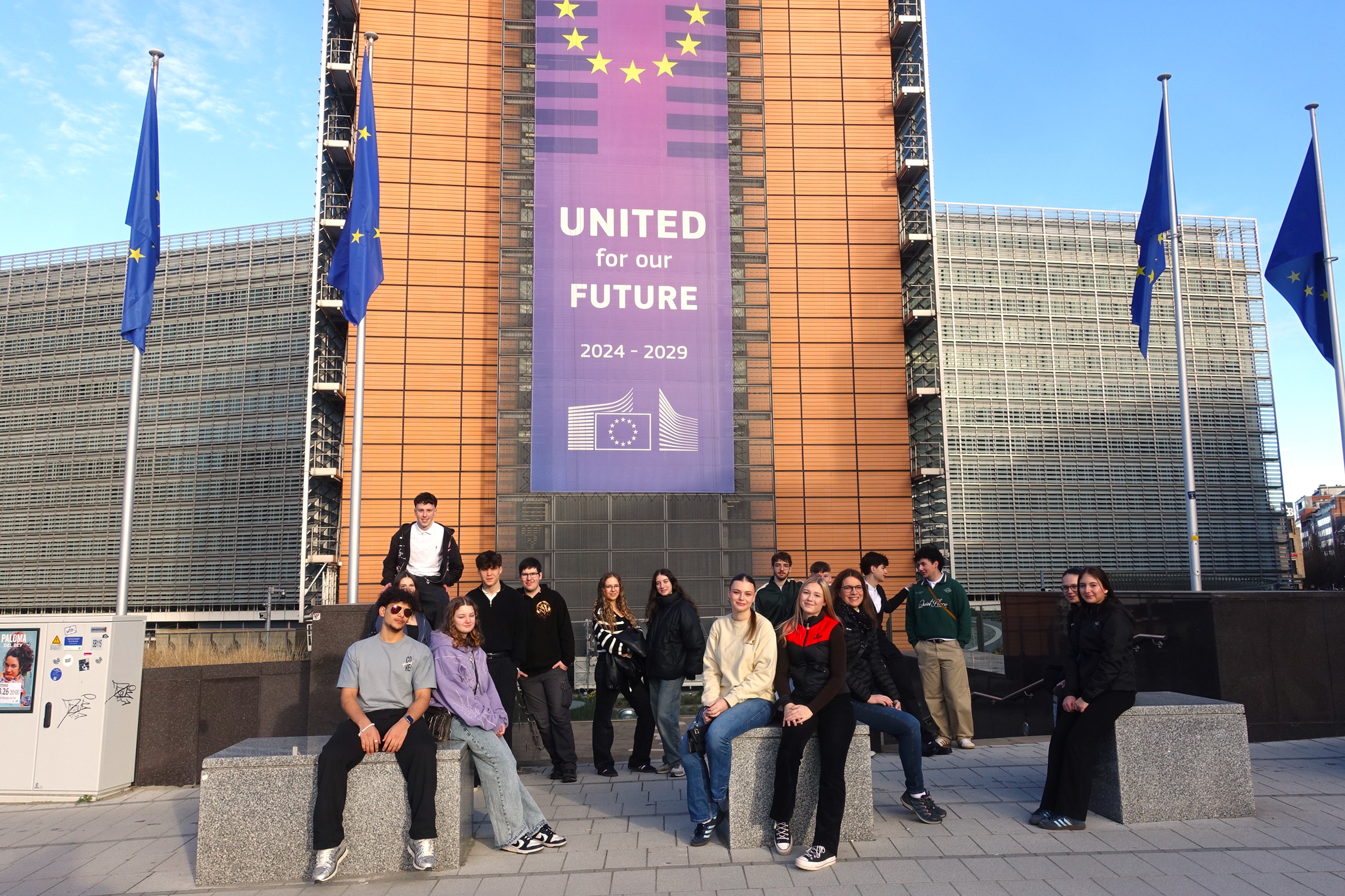 Trotz dieses eng getakteten Programms gab es eine Menge gegenseitigen Austausch u.a. bei einem unterhaltsamen Bowlingabend. Auch auf eigene Faust konnte Brüssel als lebendige, multinationale Metropole entdeckt werden. Das ungewöhnlich sonnige, vorfrühlingshafte Wetter beflügelte die Entdeckerlust, die die Gruppe an einen Abend auch ins nahe Gent mit seiner typisch flämischen Altstadt führte, wo man mit der lokalen Spezialität, den Genter Nasen, eine Menge Spaß hatte. Karina, Luisa und Jamie sind sich mit allen anderen einig: „Es war eine wunderbare, lehrreiche und auch inspirierende Schulexkursion“. „Besonders die Vielfalt der Sprachen und Kulturen war beeindruckend – nicht nur im Europaviertel“, ergänzen ihre Mitschüler Leo, Viktor und Bahaa und stimmen damit den Ausführungen von Tilly Metz zu 100% zu. Sie hatte den Fokus ihrer Präsentation auf die Chancen Europas unter dem Motto „Geeint in Vielfalt“ gelegt.